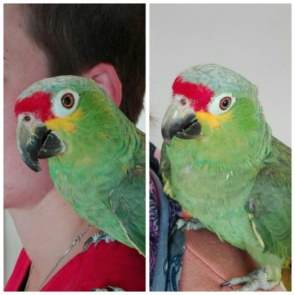 Diese hübsche Dame, eine Gelbwangenamazone, ließ sich den Schnabel bei uns in Form bringen und aufpolieren. „Waschen – Schneiden – Legen“. Einmal Schnabelpflege und frisch für den Frühling.☺