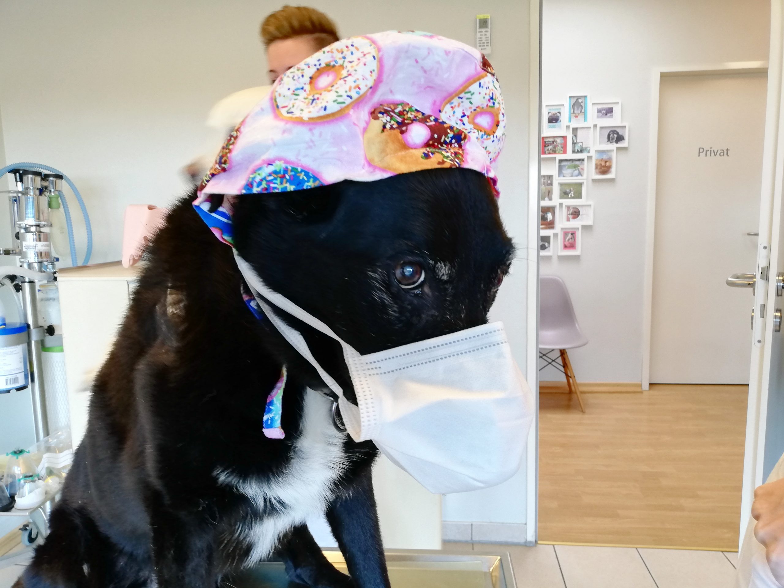 Seit dieser Woche haben wir zwei Arbeitsschichten (A-Team und B-Team jeweils ohne Hannibal) eingeteilt, die getrennt voneinander arbeiten. Frau Dr. Grünwald ist freiwillig in Urlaub gegangen. So arbeitet jetzt nur jeweils eine Tierärztin mit ihrem Team aus zwei bis drei TFAs (Tierärztliche Fachangestellte). Sollte in einer Gruppe ein Coronafall auftreten, kann die andere dann übernehmen.